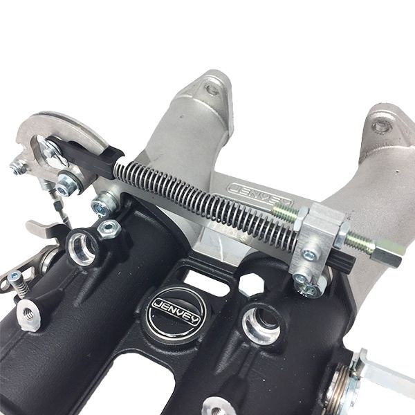 Un kit de liaison à câble unique entièrement réglable pour s'adapter aux corps de papillon Jenvey TB, avec le câble passant sur les corps.